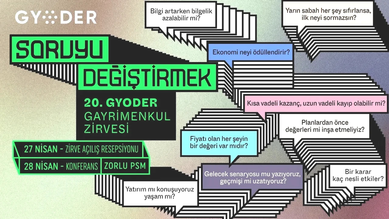 Türkiye'nin gayrimenkul alanındaki en önemli buluşma noktalarından biri olan 20. GYODER Gayrimenkul Zirvesi'nin 2026 edisyonu için hazırlanma süreci hız kazanıyor. 28 Nisan’da Zorlu PSM’de yapılması planlanan bu zirve, kamu ve özel sektörden birçok aktörü bir araya getirecek. Zirvenin 20. yıl dönümü için özel bir resepsiyon ise 27 Nisan’da gerçekleşecek. Bu yıl sektörün temel meselelerine yenilikçi bir bakış açısı kazandırmayı amaçlayan zirvenin teması ‘Soruyu Değiştirmek’ olarak belirlendi.